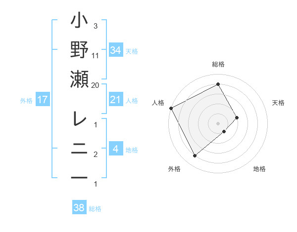 小野瀬 レニーさんを姓名の画数から五運を鑑定