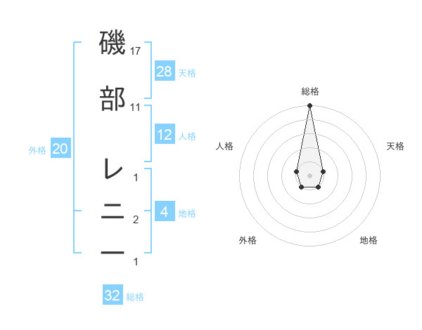 磯部 レニーさんの総格は32画の5点!