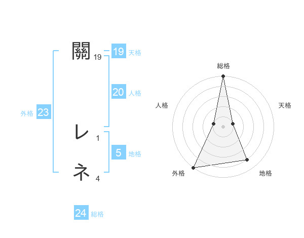 關 レネさんの総格は24画の5点!