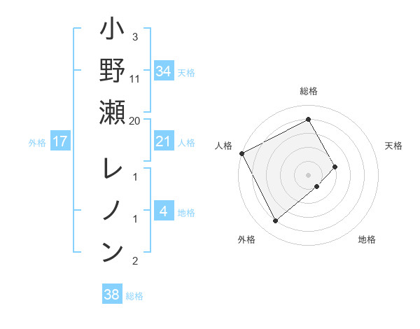 小野瀬 レノンさんを姓名の画数から五運を鑑定