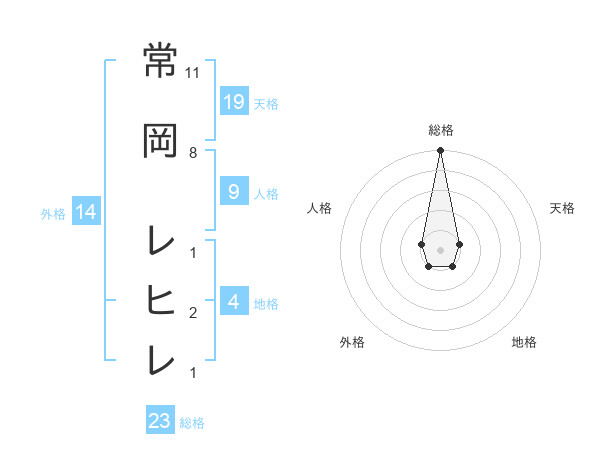 常岡 レヒレさんを姓名の画数から五運を鑑定