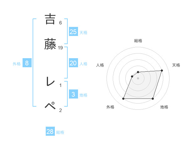 吉藤 レペさんの天格は25画の4点!