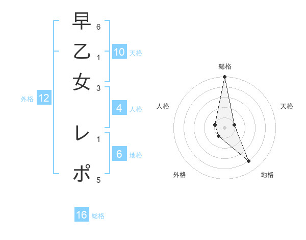 早乙女 レポさんを姓名の画数から五運を鑑定