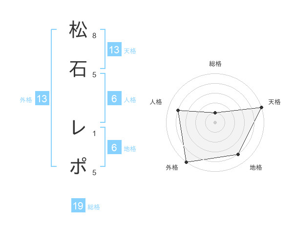 松石 レポさんの天格は13画の5点!