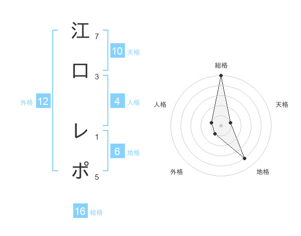 江口 レポさんの総格は16画の5点!