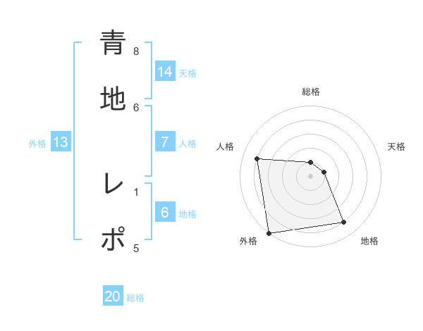 青地 レポさんの総格は20画の1点!