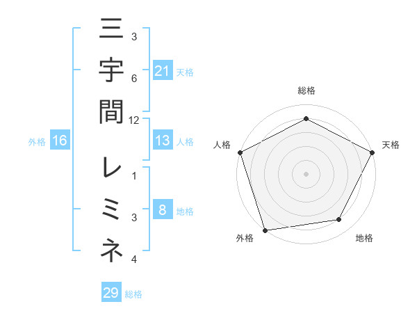三宇間 レミネさんを姓名の画数から五運を鑑定