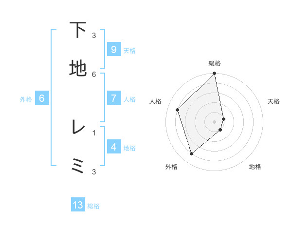 下地 レミさんの総格は13画の5点!