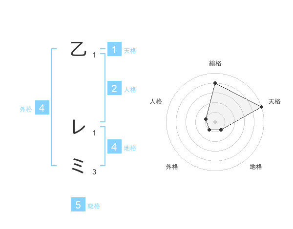 乙 レミさんの総格は5画の4点!
