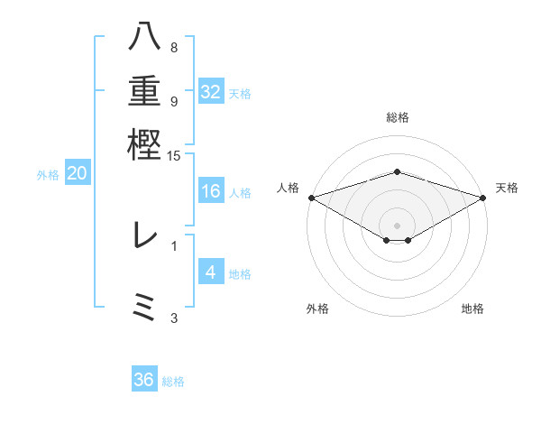 八重樫 レミさんの天格は32画の5点!