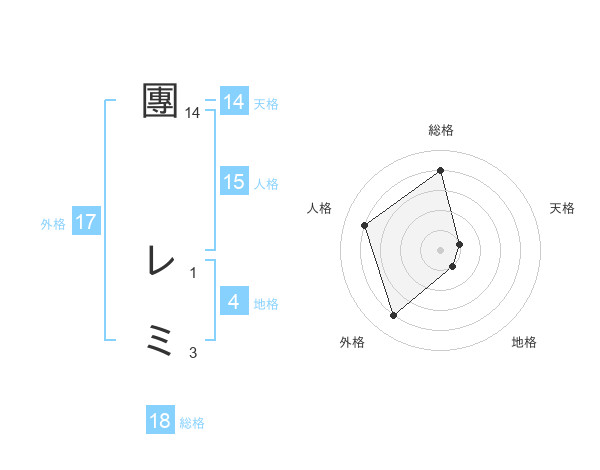 團 レミさんの総格は18画の4点!