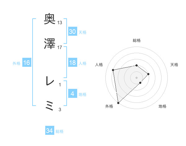 奥澤 レミさんの天格は30画の2点!