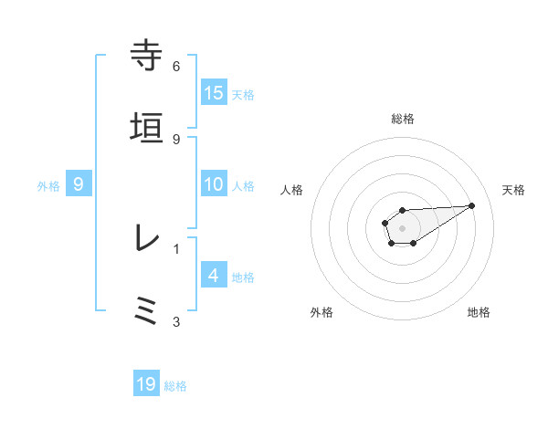 寺垣 レミさんの天格は15画の4点!