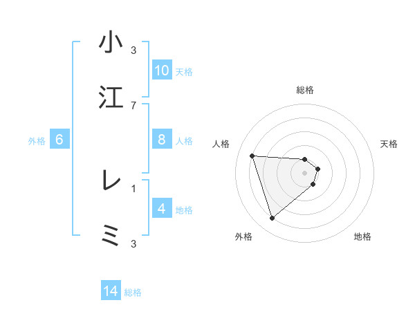 小江 レミさんの外格は6画の4点!