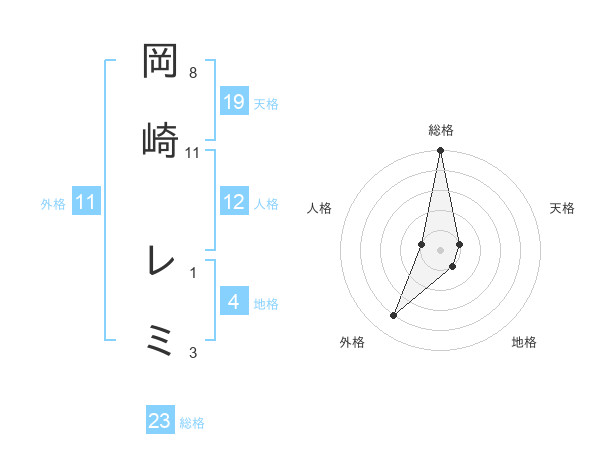 岡崎 レミさんの総格は23画の5点!