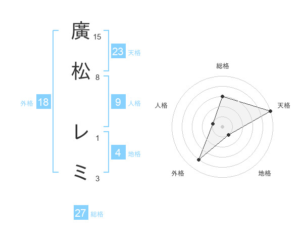 廣松 レミさんの天格は23画の5点!