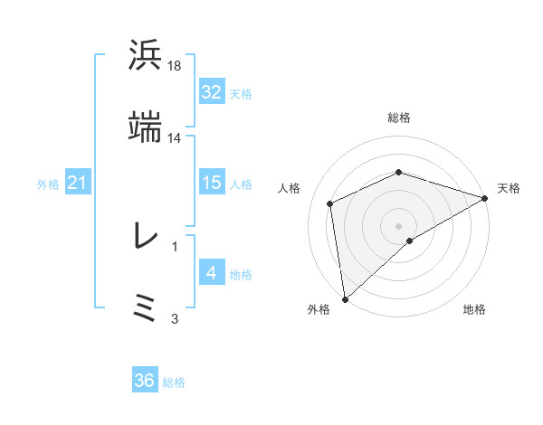 浜端 レミさんの天格は32画の5点!