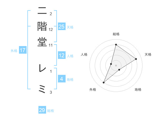 二階堂 レミさんを姓名の画数から五運を鑑定