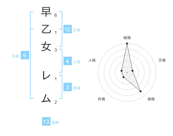 早乙女 レムさんを姓名の画数から五運を鑑定
