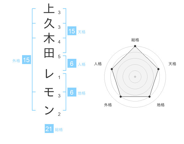 上久木田 レモンさんを姓名の画数から五運を鑑定