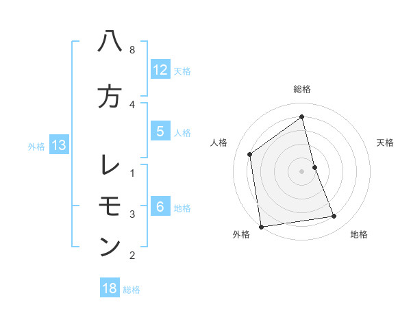 八方 レモンさんの外格は13画の5点