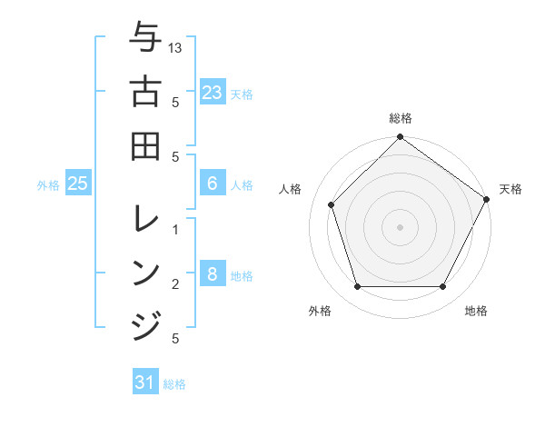 与古田 レンジさんを姓名の画数から五運を鑑定