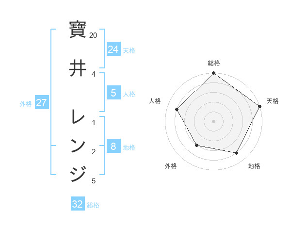 寶井 レンジさんを姓名の画数から五運を鑑定