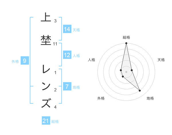 上埜 レンズさんの総格は21画の5点!