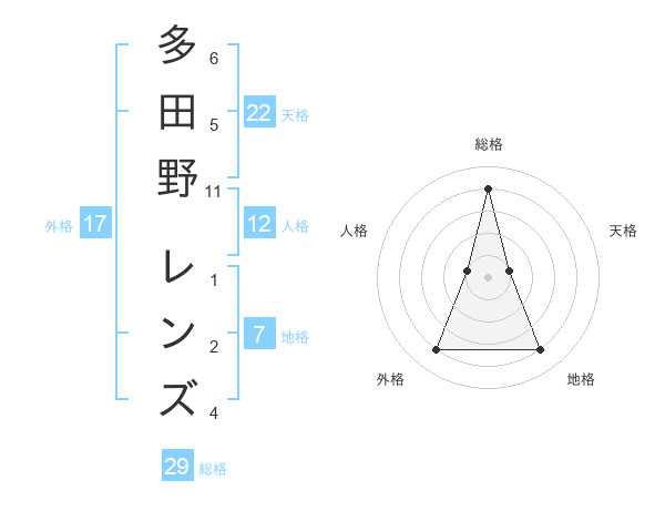 多田野 レンズさんを姓名の画数から五運を鑑定