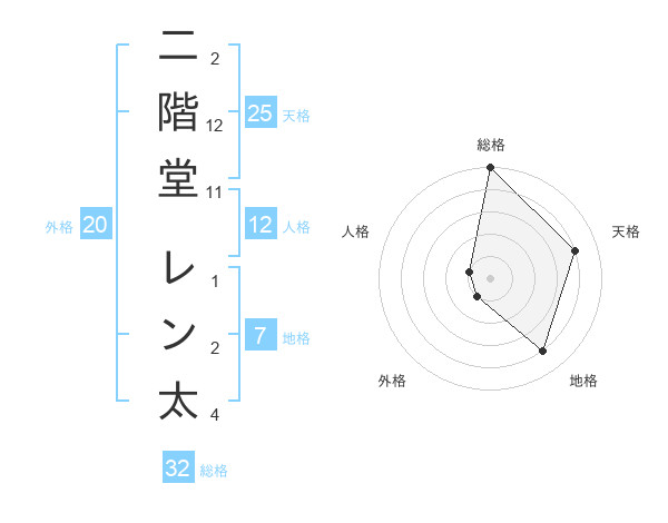 二階堂 レン太さんを姓名の画数から五運を鑑定