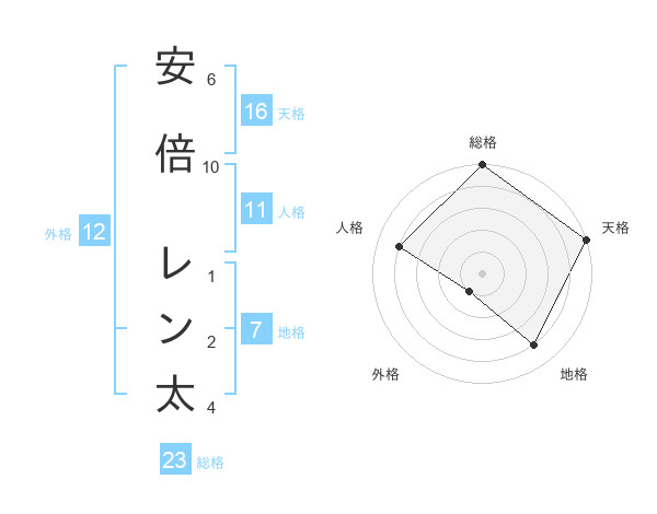 安倍 レン太さんの総格は23画の5点!