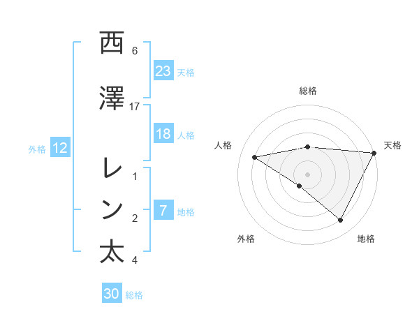 西澤 レン太さんを姓名の画数から五運を鑑定