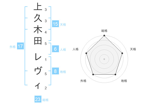 上久木田 レヴィさんを姓名の画数から五運を鑑定