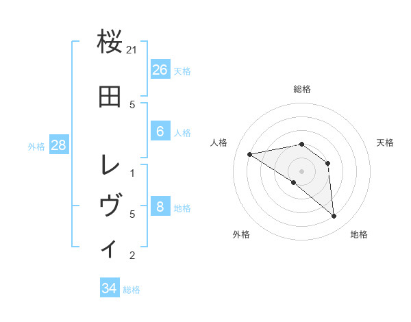 桜田 レヴィさんを姓名の画数から五運を鑑定