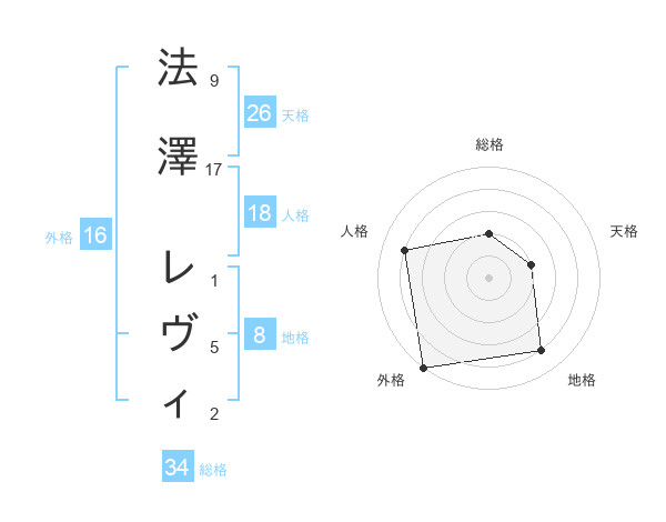 法澤 レヴィさんを姓名の画数から五運を鑑定