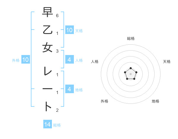 早乙女 レートさんの総格は14画の1点!
