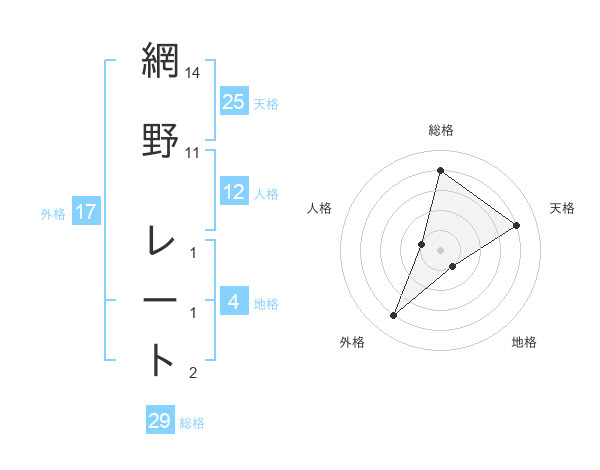 網野 レートさんの総格は29画の4点!