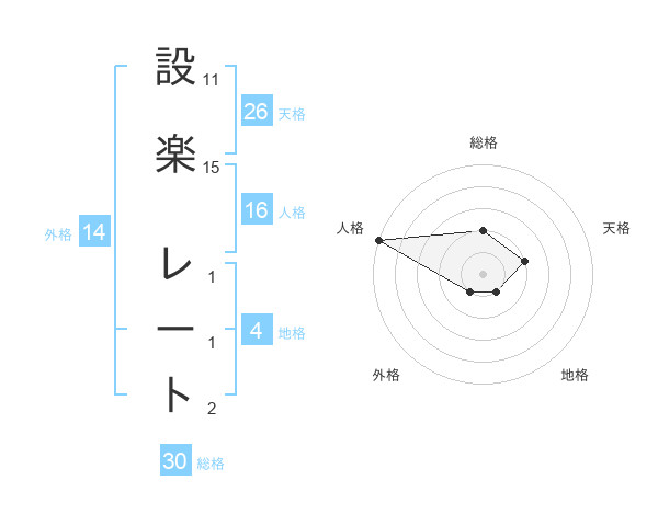 設楽 レートさんの総格は30画の2点!