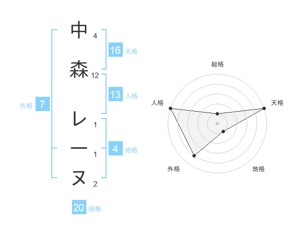 中森 レーヌさんを姓名の画数から五運を鑑定