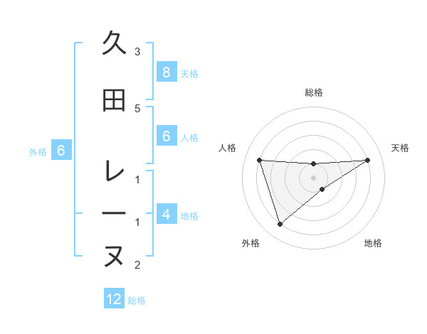 久田 レーヌさんを姓名の画数から五運を鑑定