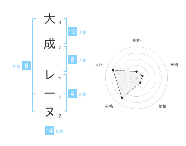 大成 レーヌさんの総格は14画の1点!