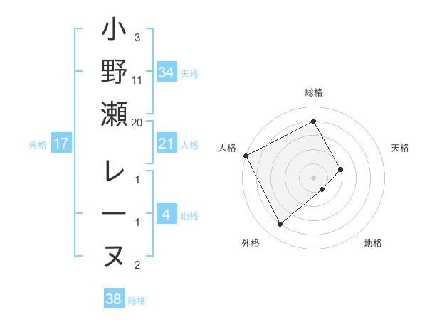 小野瀬 レーヌさんを姓名の画数から五運を鑑定