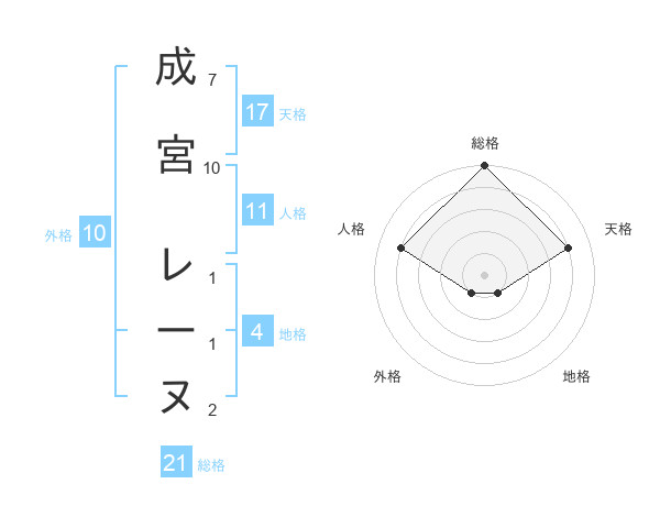 成宮 レーヌさんを姓名の画数から五運を鑑定