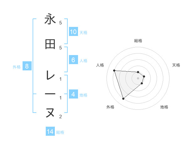永田 レーヌさんを姓名の画数から五運を鑑定