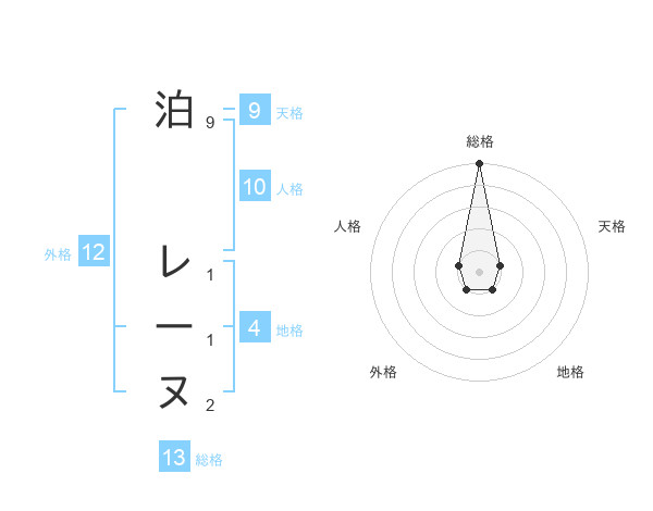 泊 レーヌさんの総格は13画の5点!