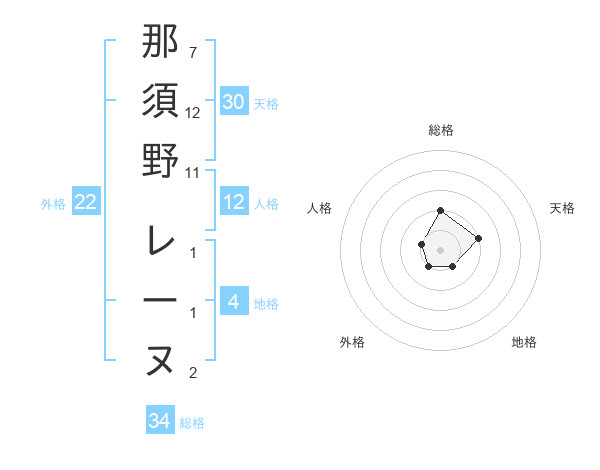 那須野 レーヌさんの総格は34画の2点!