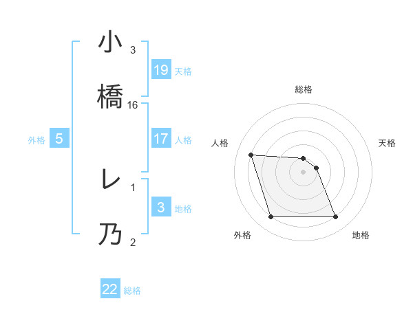 小橋 レ乃さんを姓名の画数から五運を鑑定