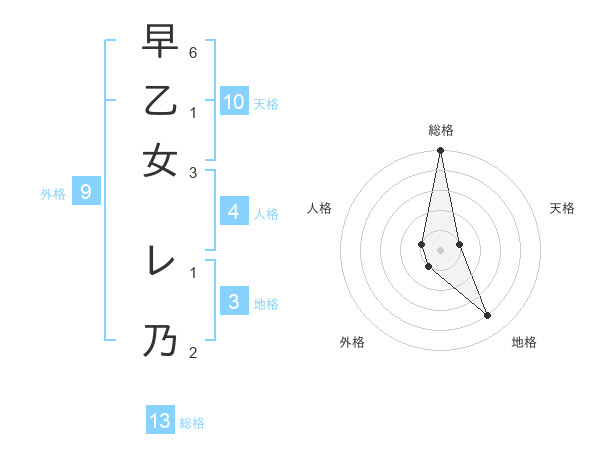 早乙女 レ乃さんの総格は13画の5点!