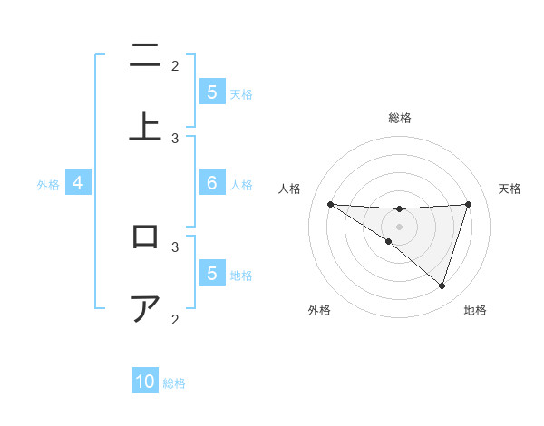 二上 ロアさんの天格は5画の4点!