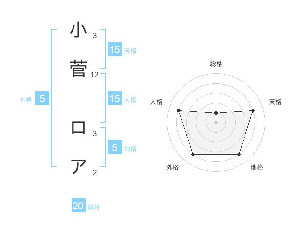 小菅 ロアさんの天格は15画の4点!